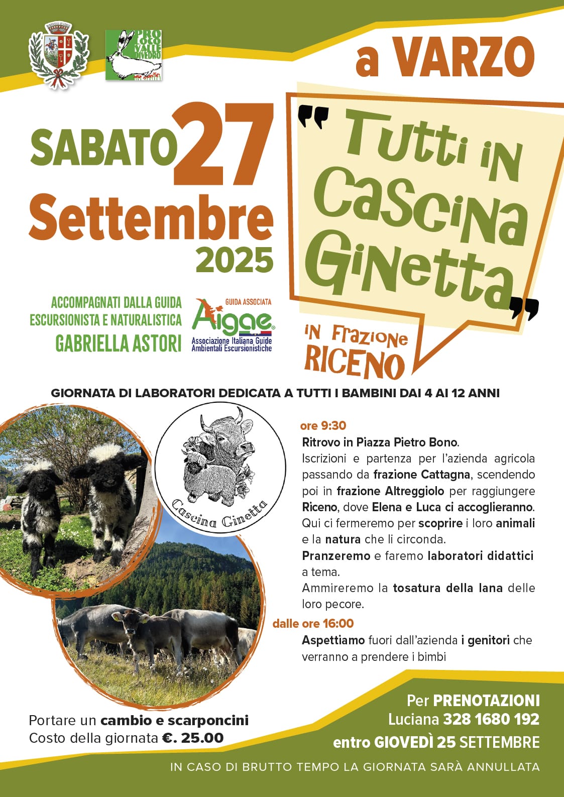 Sabato 27 settembre tutti in cascina Ginetta a Riceno. Giornata didattica dedicata ai bambini dai 4 ai 12 anni.