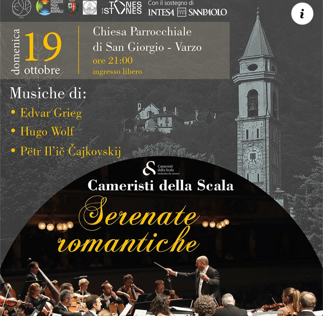 Domenica 19 ottobre alle ore 21.00 presso la Chiesa Parrocchiale di Varzo i Cameristi della Scala presentano Serenate Romantiche